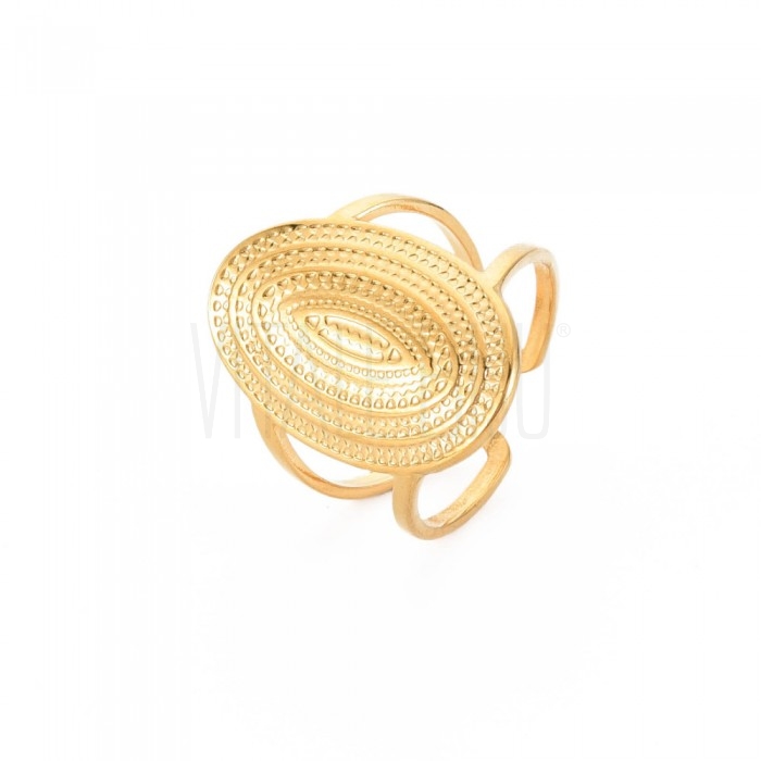 Etiquetas: Anel Ajustável - Aço Inox Dourado