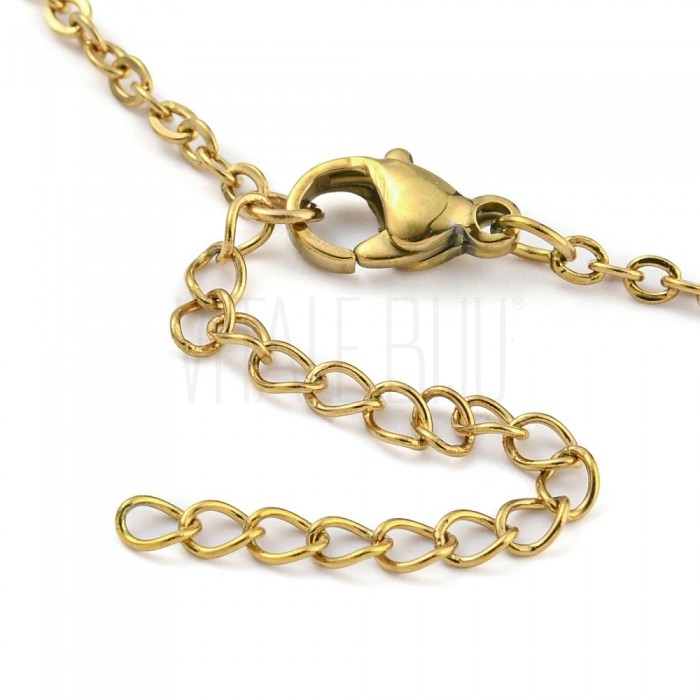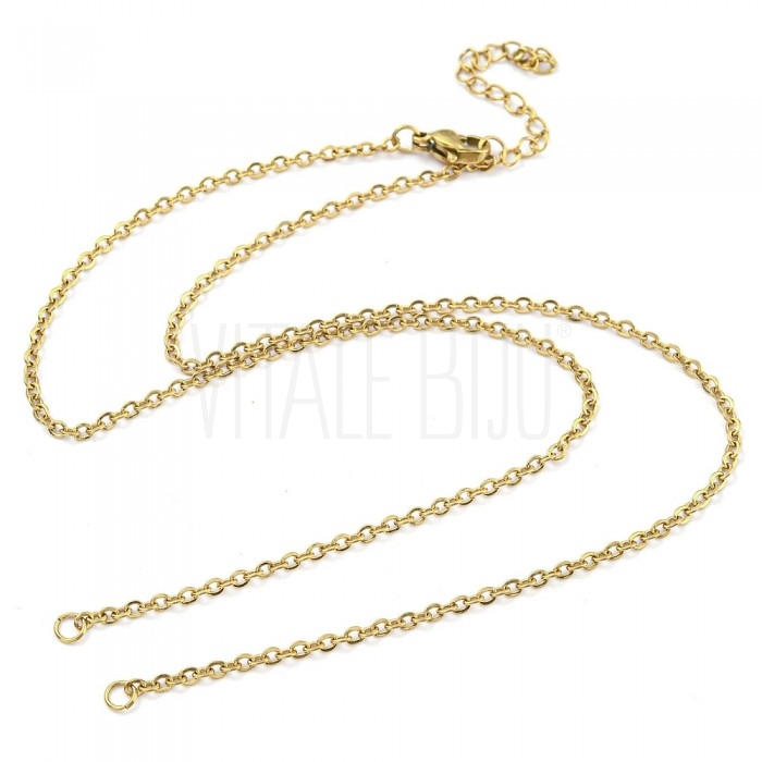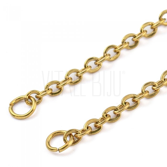 Fio Semi Pronto Elo Oval Achatado 2mm c/ Extensão - Aço Inox Dourado