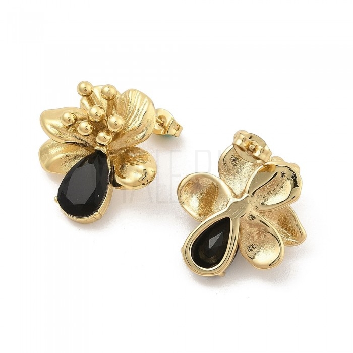 Brinco Flor Black Gota 23x22mm - Aço Inoxidável 304 Dourado