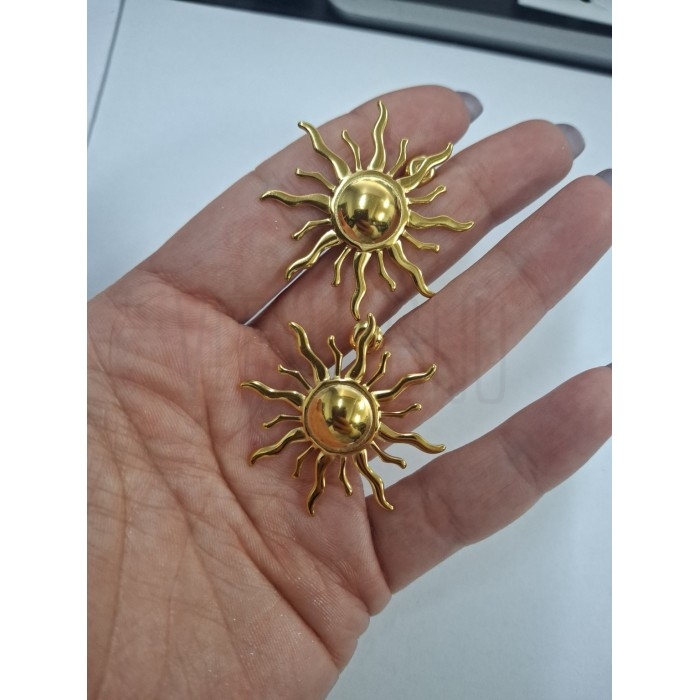 Fabricados em aço inox de alta qualidade, são a prova de água, waterproof, resistentes ao desgaste e ideais para uso diário sem perder o brilho. O acabamento polido garante um efeito espelhado sofisticado, enquanto o formato de sol traz um toque contemporâneo e elegante.