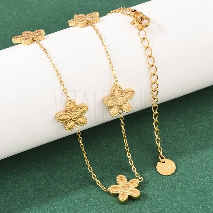 Conjunto Flor + Brinco Flor -  Aço Inox Dourado 18K