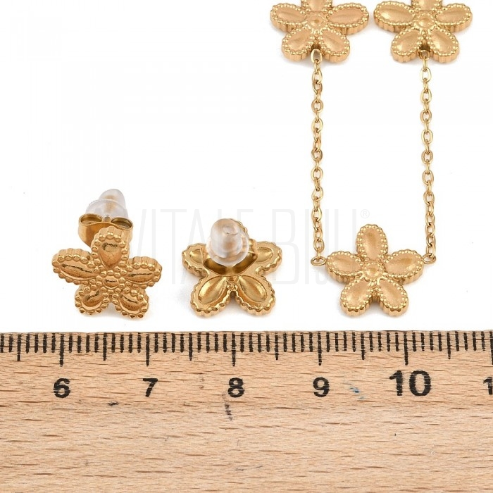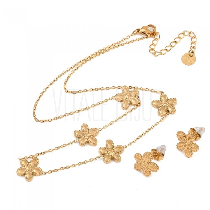 Conjunto Flor + Brinco Flor - Aço Inox Dourado 18K