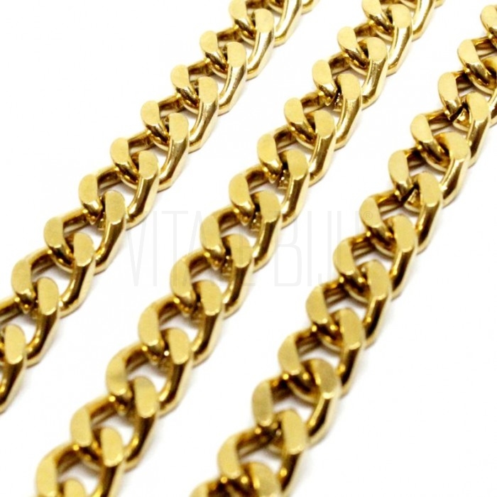 Corrente Elo Torcido Achatado 6mm - Aço Inox Dourado
