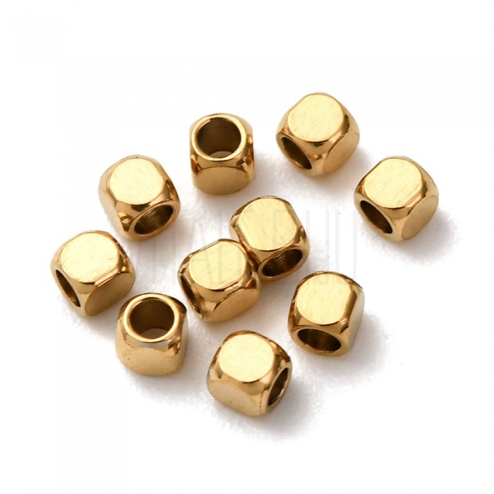 Entremeio/Separador Cubo 2x2mm Furo 1mm - Aço Inox Dourado (Mini)