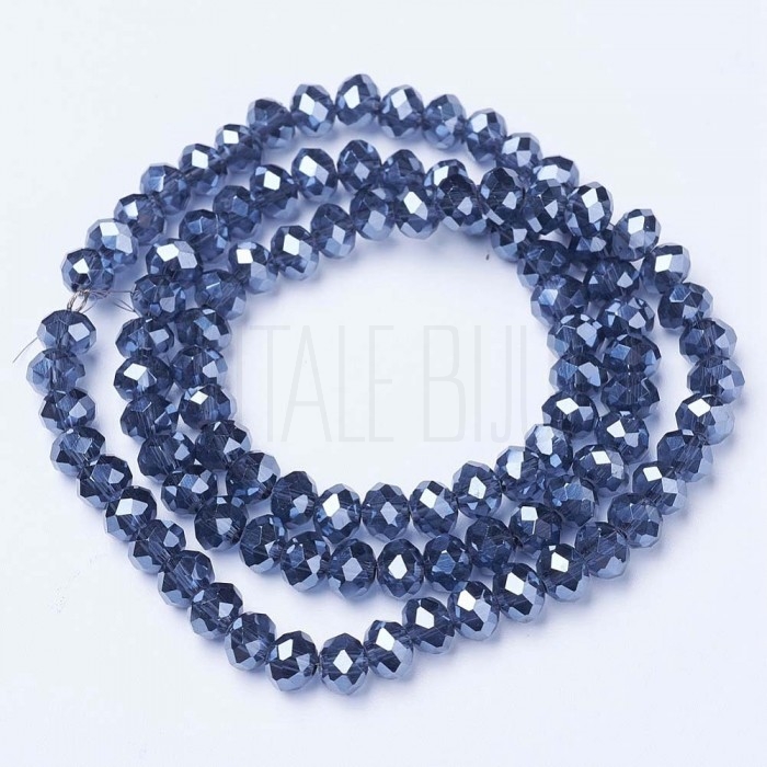 Fiada Cristal Facetado 8mm - Azul Petróleo Translucido Espelhado