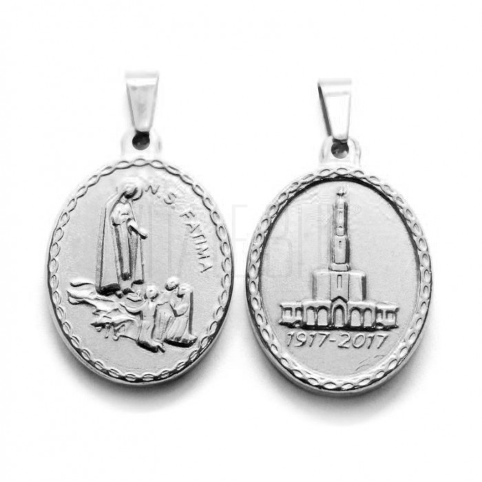 Medalha Oval Nossa Senhora Fátima 29x21mm - aço inox