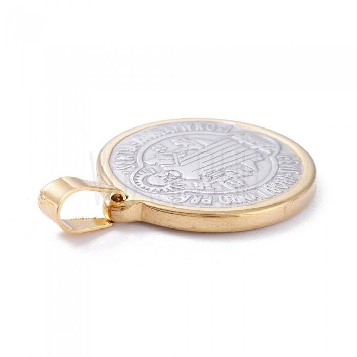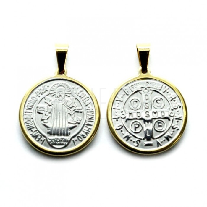 Medalha São Bento em relevo 22mm - Aço inox - Borda Dourada