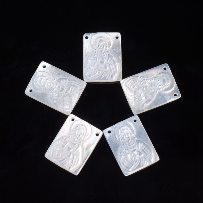 Pendente Madrepérola Natural Sagrado Coração de Jesus 16x12mm (tipo escapulário)