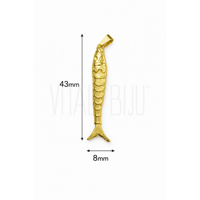 Pendente Peixe 43x8mm - Aço Inoxidável Dourado
